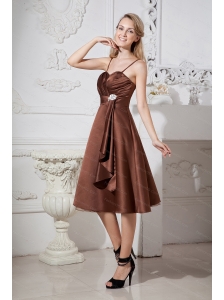 Beading Spaghetti Straps Tea-length Satin and Organza Dama Dress