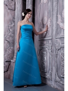 Satin A-line Strapless Sky Blue Cheap Dama Dress