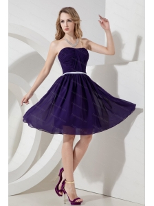 Simple Ruch Chiffon Strapless Knee-length Dama Dress