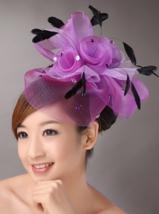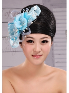 Popular Light Blue Taffeta Tulle Feather Beading Women’ s Fascinators