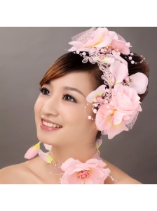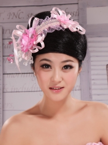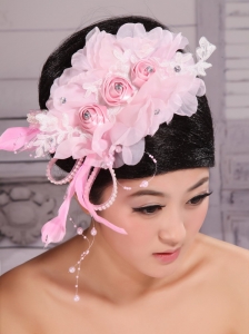 Fully Handmade Beaded and Flowers Decorate For Party Rose Pink Headpieces