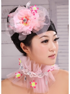 Beautiful Pink Taffeta and Tulle Pearl Headpiece For Party