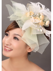 Popular Light Yellow Tulle Feather Hand Made Flowers Fascinator