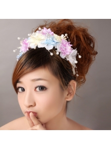 Muti-color Headpiece With Hand Made Flowers and Pearl