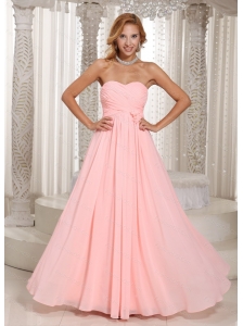 Baby Pink Ruched Sweetheart Long Dama Dress