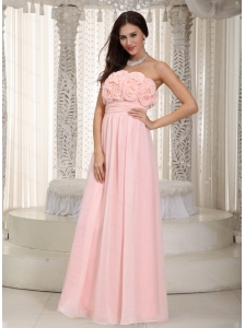 Long Baby Pink Empire Chiffon Hand Made Flowers Dama Dress