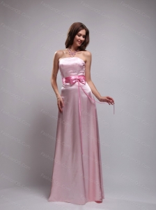 Long Baby Pink Empire Strapless Sash Dama Dress