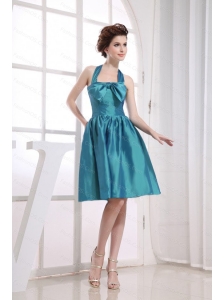 Teal Halter Bowknot Discount Dama Dress