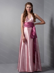 Halter Column Baby Pink Satin Dama Dresses 2013