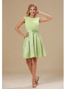 Yellow Green Knee-length Sash Scoop Dama Dress For Summer
