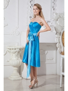 Ruch and Bows Sweetheart Empire Blue Taffeta Dama Dress