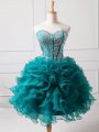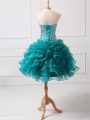 Home >  Special Occasion Dresses >  Military Ball Gowns > Teal A-line Beading and Ruffles Military Ball Dresses For Women Lace Up Organza Sleeveless Mini Length