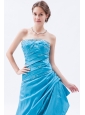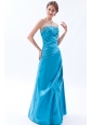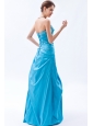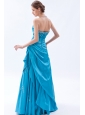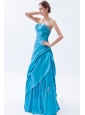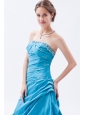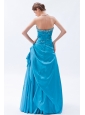 Teal A-line / Princess Strapless Prom Dress Taffeta Beading Floor-length