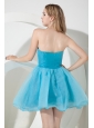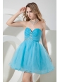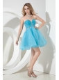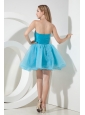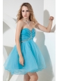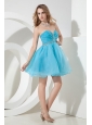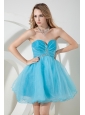 Teal A-line / Princess Sweetheart Beading Prom Dress Mini-length Organza