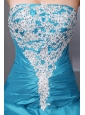 Teal A-line Strapless Beading and Appliques Quinceanera Dress Floor-length Taffeta