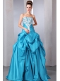 Home >  Quinceanera Dresses >  15 Quinceanera Dresses > Teal A-line Strapless Beading and Appliques Quinceanera Dress Floor-length Taffeta