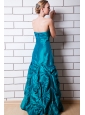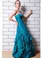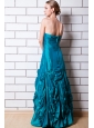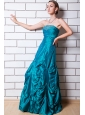 Teal A-line Strapless Prom Dress Taffeta Beading Floor-length
