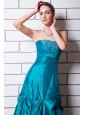 Home >  Prom Dresses >  Modest Prom Dresses > Teal A-line Strapless Prom Dress Taffeta Beading Floor-length