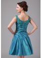 Home >  Special Occasion Dresses >  Mother of the Bride Dresses > Teal Appliques and Ruch Mini-length Mother Of The Bride Dress With Jacket In Milledgeville Georgia