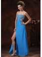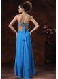 Teal Beaded Decorate Bust Stylish Evening Dress With Strapless Chiffon