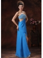 Home >  Evening Dresses > Teal Beaded Decorate Bust Stylish Evening Dress With Strapless Chiffon