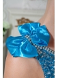 If you are looking to put a bit of sparkle and bling into your next formal event, this stunning gown would definitely be a great way to do it. It is made in a traditional sheath style and has been completely embellished by blue and shimmering sequins throghout, which creates a fantastic effect when worn. It has a one shoulder strap design and a thin silver sash across the midsection. The dress sways beautifully across the floor when you move, as if you're floating on air. A truly stunning dress for any event on your calendar.