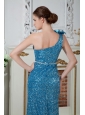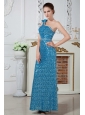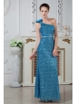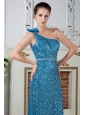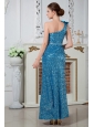 Teal Column One Shoulder Prom Dress Ankle-length Sequin Beading