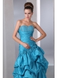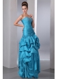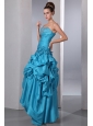 Home >  Quinceanera Dresses >  15 Quinceanera Dresses > Teal Column Sweetheart Beading and Pick-ups Quinceanera Dress Floor-length Taffeta