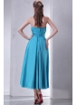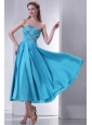 Teal Empire Strapless Tea-length Prom Dress with Beading