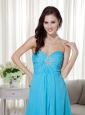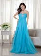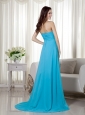 Home >  Prom Dresses >  Best Prom Dresses > Teal Empire Sweetheart Brush Train Chiffon Beading Prom Dress