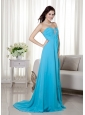 Teal Empire Sweetheart Brush Train Chiffon Beading Prom Dress