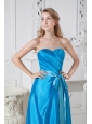 Home >  Prom Dresses >  Short Prom Dresses > Teal Empire Sweetheart Short Prom Dress Taffeta Ruch and Bows Knee-length