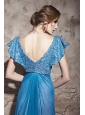 A sexy yet elegant evening dress accents a V-neck line and ruffle sleeves. The sequins details over the bodice part makes the dress stunning and charming. The rhinestone encrusted on the waistline adds the exquisite looks. The catching up on the front and the the back create a nature ruching look for the skirt and makes the dress more fantastic. The gorgeous dress is fitable for both the formal and informal parties.