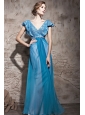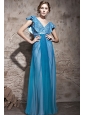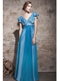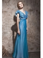 Home >  Prom Dresses >  Discount Prom Dresses > Teal Empire V-neck Floor-length Chiffon and Sequin Beading Prom Dress
