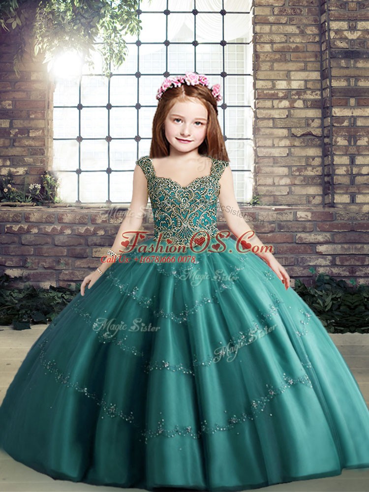 Home >  Special Occasion Dresses >  Beautiful Kids Pageant Dresses > Teal Pageant Gowns Party and Wedding Party with Beading Straps Sleeveless Lace Up