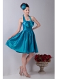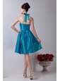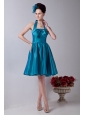 Teal Princess Halter Prom / Homecoming Dress Taffeta Bowknot Knee-length