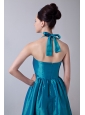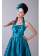 Home >  Prom Dresses >  Cheap Prom Dresses > Teal Princess Halter Prom / Homecoming Dress Taffeta Bowknot Knee-length