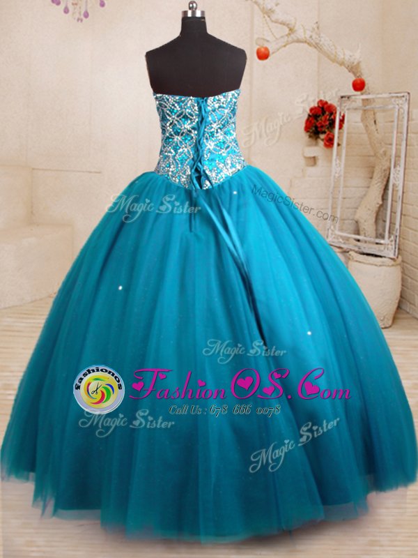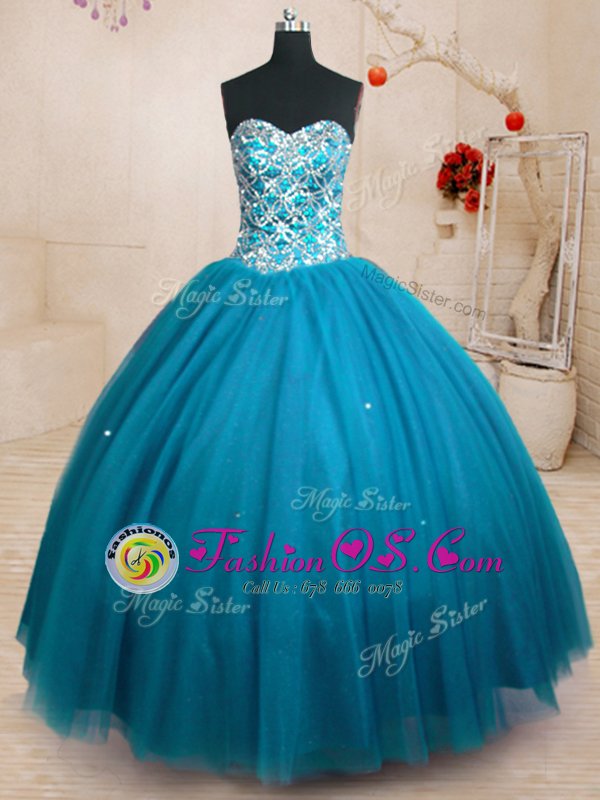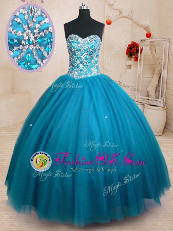 Teal Quince Ball Gowns Military Ball and Sweet 16 and Quinceanera and For with Beading Sweetheart Sleeveless Lace Up