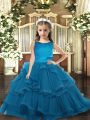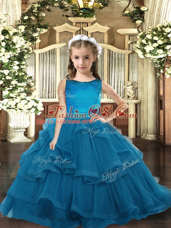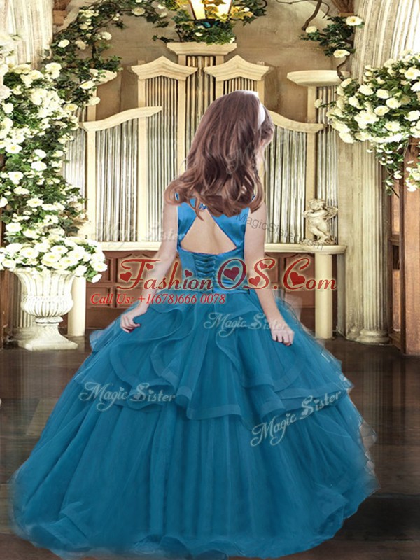 Teal Scoop Neckline Ruffled Layers Kids Pageant Dress Sleeveless Lace Up