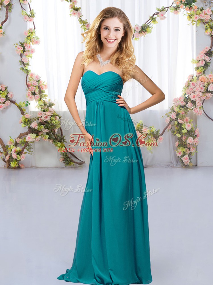 Teal Sleeveless Chiffon Criss Cross Quinceanera Court Dresses for Wedding Party