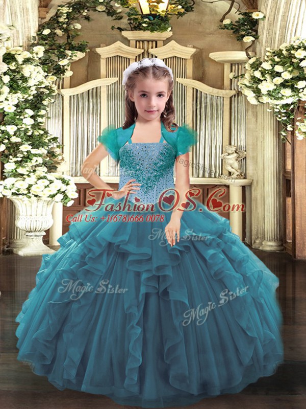 Teal Sleeveless Organza Lace Up Girls Pageant Dresses for Party and Sweet 16 and Quinceanera and Wedding Party