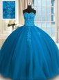Home >  Quinceanera Dresses >  15 Quinceanera Dresses > Teal Tulle Lace Up Sweetheart Sleeveless Floor Length Quinceanera Gown Appliques and Embroidery