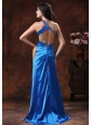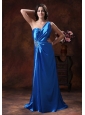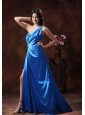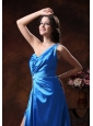 Tempe Arizona Shy Blue High Slit One Shoulder Prom Dress With Beaded Decorate Waist On Elastic Woven Satin