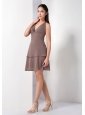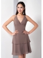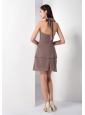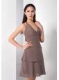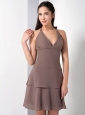 The Brand New Style Brown A-line Halter Bridesmaid Dress Chiffon Mini-length