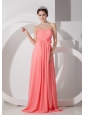 Home >  Prom Dresses >  Cheap Prom Dresses > The Brand New Style Watermelon Empire Sweetheart Prom Dress Chiffon Ruch and Hand Made Flowers Brush Train