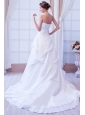 Home >  Wedding Dresses >  Popular Wedding Dresses > The Most Popular A-line / Princess Sweetheart Court Train Taffeta Appliques Wedding Dress
