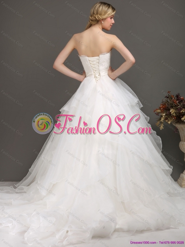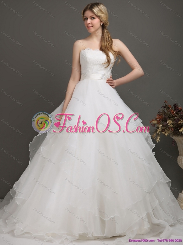 Home >  Wedding Dresses >  Fashionable Wedding Dresses > The Most Popular and New White Wedding Dresses with Brush Train and Sash in 2015