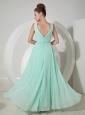 The Most Popular Apple Green Empire V-neck Prom / Evening Dress Chiffon Beading Floor-length