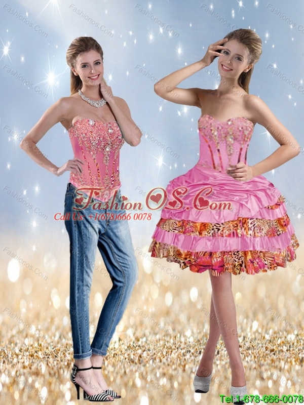 The Most Popular Beading and Ruffled Layers Rose Pink Detachable Prom Dress for 2015