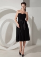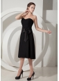 The Most Popular Black Princess Tea-length Bridesmaid Dress Chiffon Sashes / Ribbons